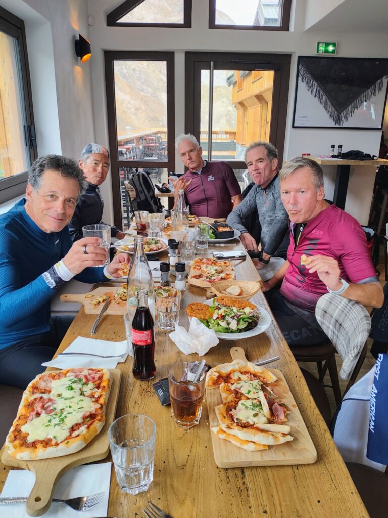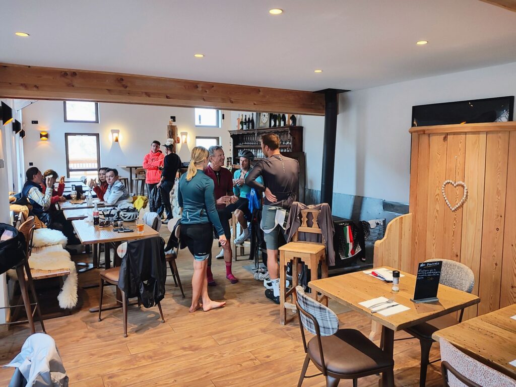 The day started with a 14k decent from our hotel to the valley and a 12k ride to the base of the Telegraphed. Then the 15k ride up the Telegraphe and a stop there for tea and coffee. Then a small decent to the base of the Galbier and the long climb.